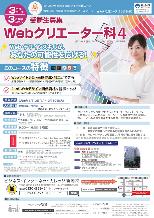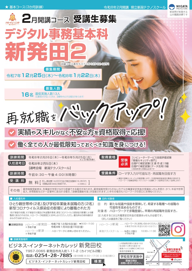 - ハローワークで求職登録し、訓練修了後早期の再就職を目指す方